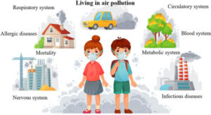 We can say that children who live in areas with heavy traffic or smoke are at higher risk of breathing problems. This is because air pollution contains harmful gases and particles that settle deep inside their small lungs.