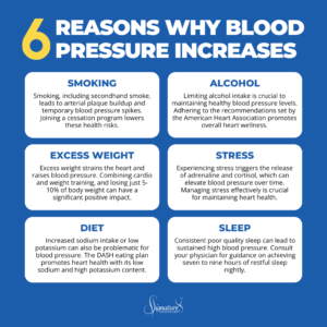 Cigarettes and alcohol damage blood vessels and force the heart to work harder, leading to higher blood pressures.